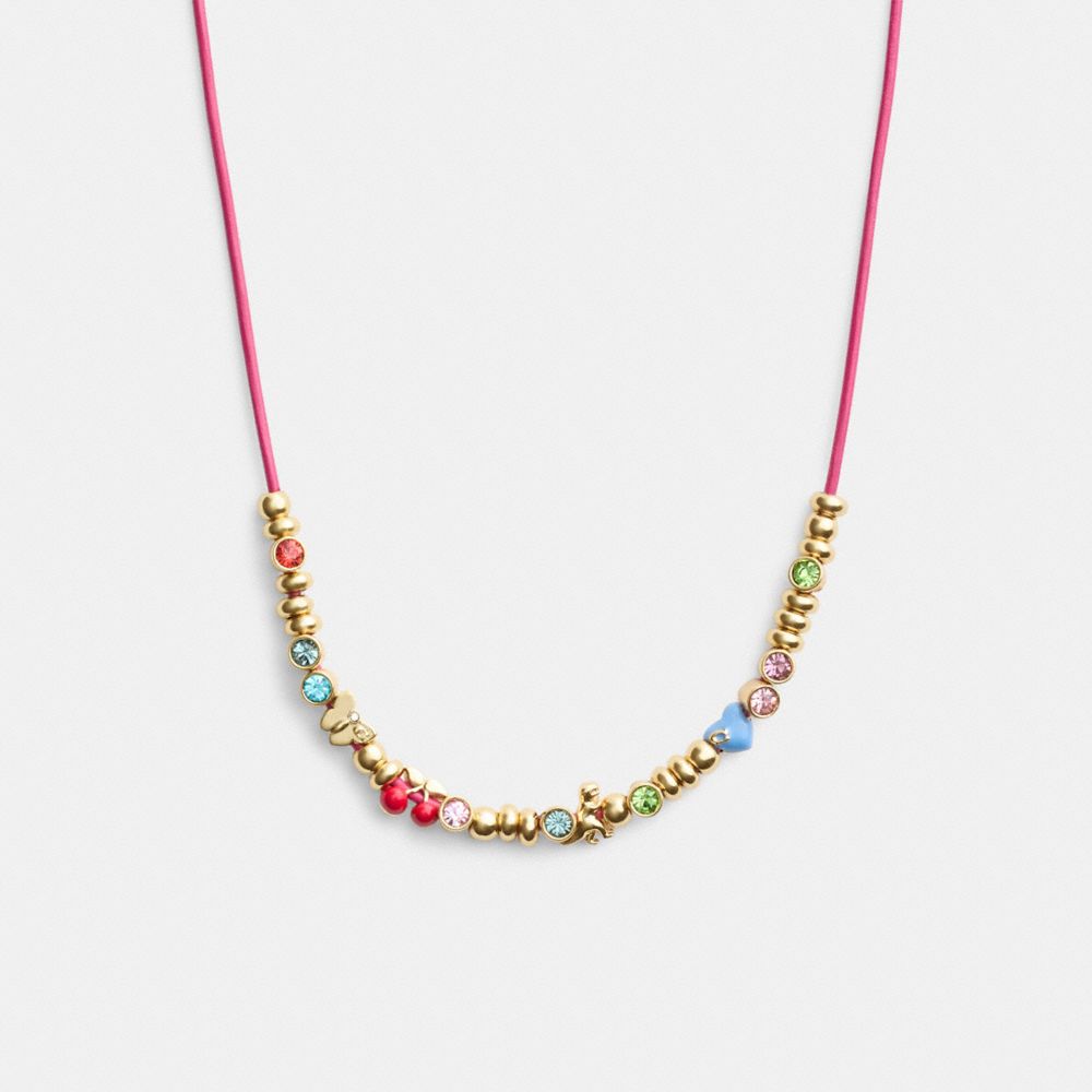 Crafted of smooth leather in a nod to our heritage, this playful wrap necklace features an array of colorful charms. Accented with vibrant crystals for a touch of sparkle, it’s finished with an adjustable slide closure.
