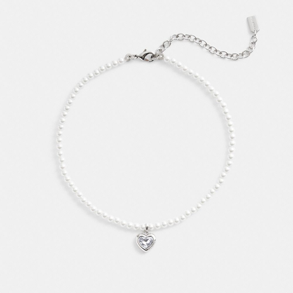 Spread some love. Crafted of luminous glass pearls, this necklace features a shimmering glass crystal heart pendant. It’s finished with an adjustable clasp closure to wear long or short.