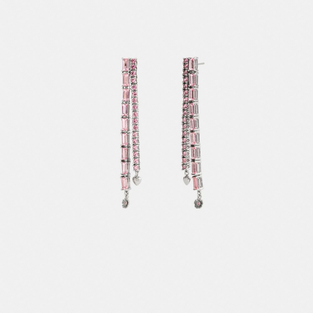 Our Tea Rose motif and Signature heart dangle from these dazzling linear crystal tennis earrings. The elegant pair is finished with a round clutch closure.