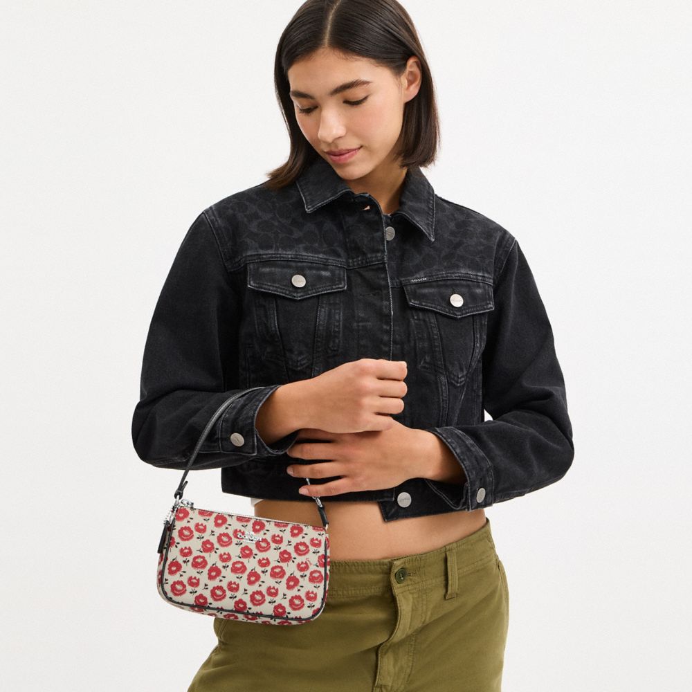 COACH®,Nolita 19 With Floral Print,Lining Canvas,Canvas,Shoulder Bag,Metal,Piping,Logo,Compact,Lined,Day Party,White,Detail View