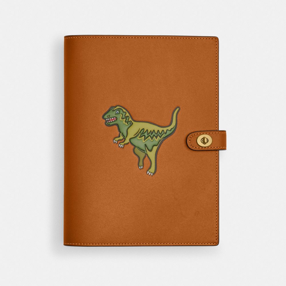 COACH®,Notebook With Rexy,Leather,Notebook,Graphic,Embossed,Brown,Front View
