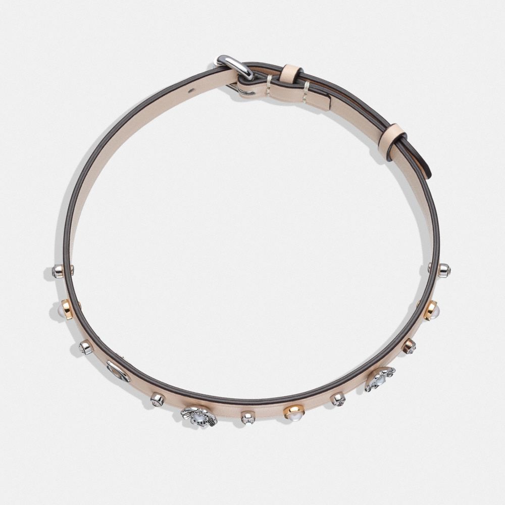 Featuring luminous glass pearls and sparkling crystals, this leather choker channels ‘90s nostalgia. It’s detailed with our Signature hardware and Tea Rose motif for iconic Coach style.