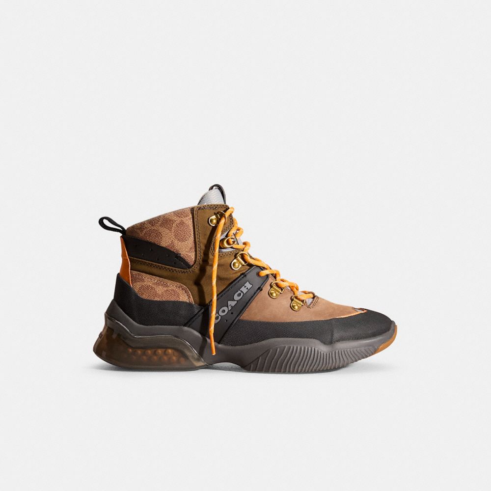 For trails, treks and city streets, our lightweight Hiker is made with proprietary Coach CitySole technology for maximum comfort and flexibility. A sneaker hybrid, it sits at the intersection of fashion and function. Crafted of our Signature canvas and a breathable knit, it features a Coach TPU for maximum stability and a layer of shock-absorbing cushioned pods that provide all-day support. It's finished with a grooved sole for superior movement and traction.