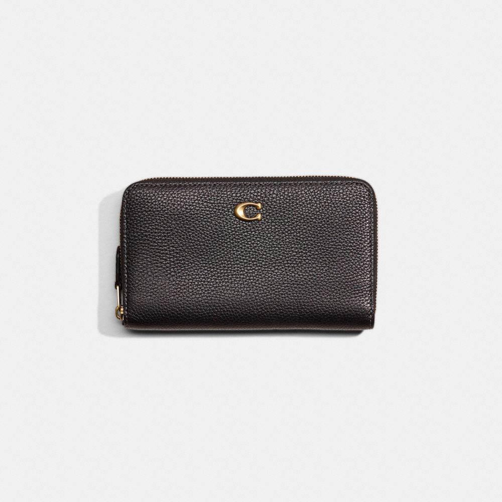 Crafted of polished pebble leather detailed with our Signature hardware, this medium wallet unzips for easy access to its well-organized interior. Ten card slots, a full-length bill compartment and a zip coin pocket keep everyday essentials neatly tucked away.