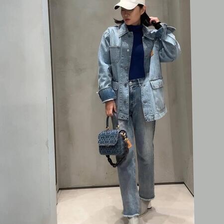 - Signature denim and glovetanned leather