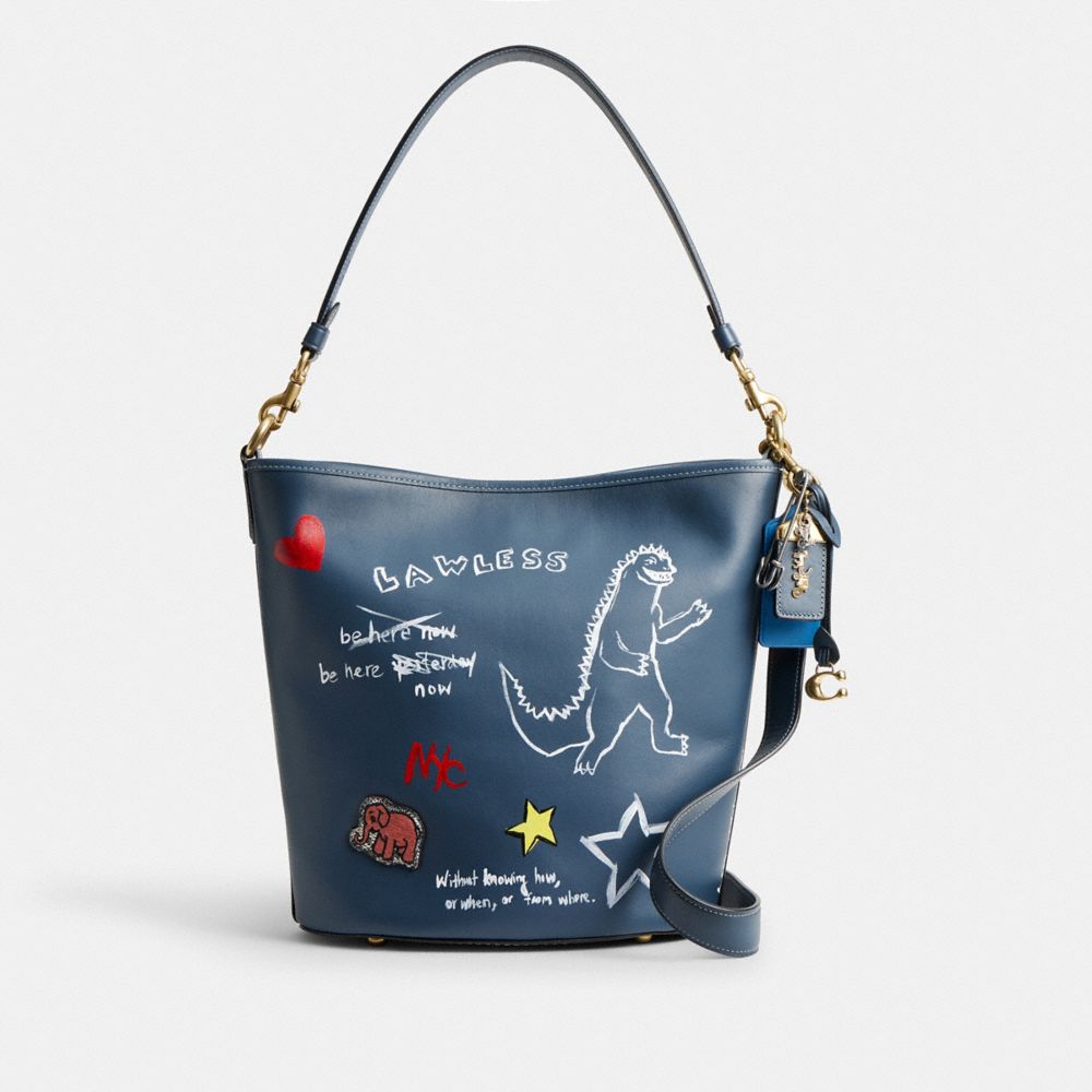 Part of our Spring 2025 presentation and available NOW, this limited-edition Dakota Bucket Bag is inspired by rebel punk artwork, Coach iconography and New York, the city we call home. Pre-owned and now (re)loved, it’s a very special Coach upcrafted design inspired by our commitment to rethinking and reducing our impact on the planet. Saved from the landfill, this gently-worn bag was lovingly repaired and transformed by our in-house craftspeople who added clever details to give it a second life. It’s completely one-of-a-kind, and comes with its own unique set of charms. Wear it, love it, pass it on.