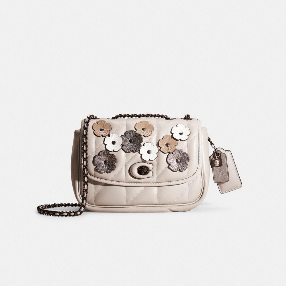 Reimagined by Nikita M’Bouroukounda with clusters of dimensional Tea Rose appliqué in a sophisticated color palette, this flap-front style has been expertly cleaned, conditioned and restored. Our talented craftspeople Jose Reyna, Nicole Izquierdo and Yngrid Pichardo Baez embellished the flap with die-cut leather blooms accented by gunmetal rivets and added a playful repurposed charm. The Madison is a timeless style with modern proportions. Crafted of quilted plush, ultra-soft leather, it's finished with multifunction pockets, an exterior slip pocket for easy access to essentials and our Signature turnlock closure. Convert the leather chain strap from long to two short handles.