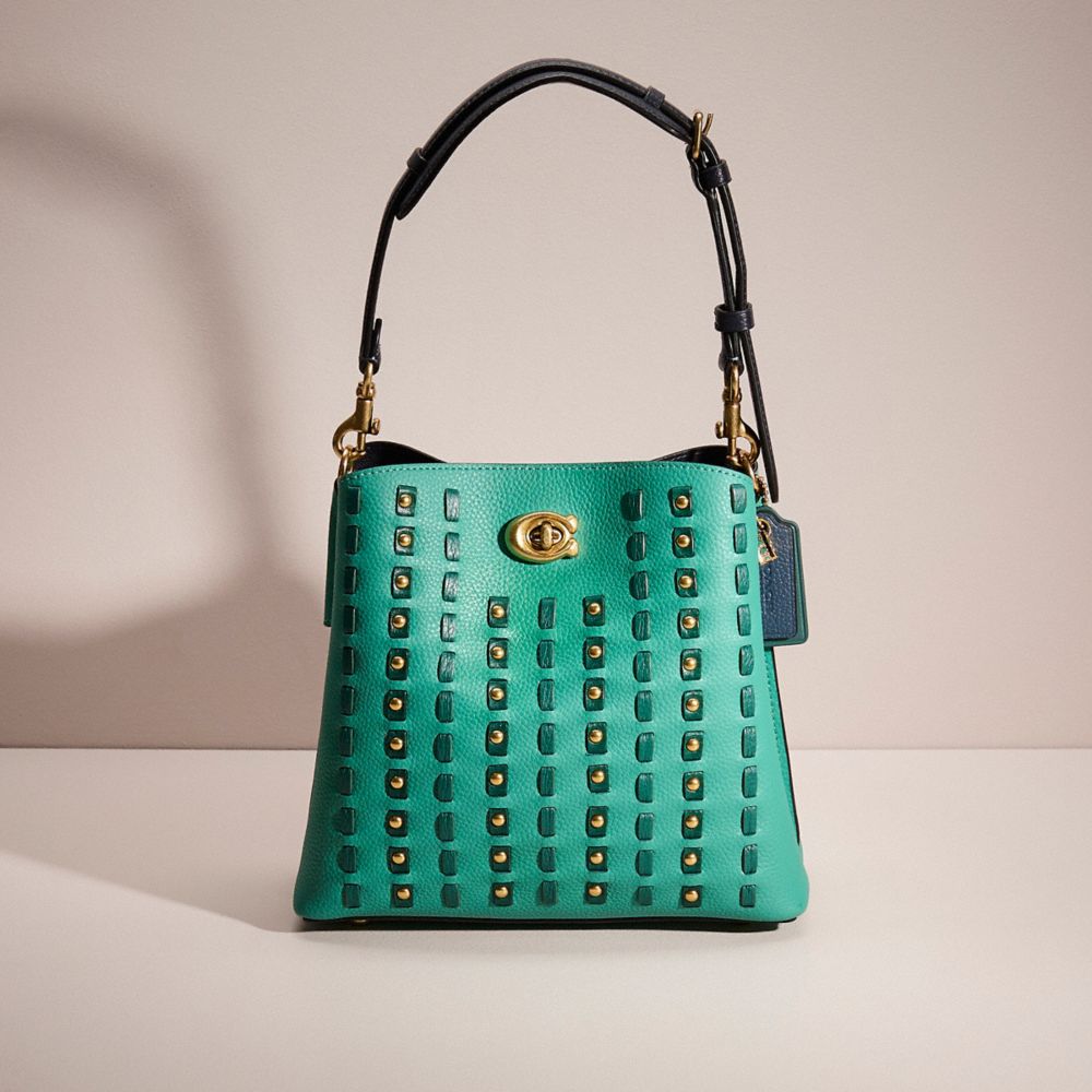 Pre-owned and now (re)loved, this Willow Bucket Bag is a very special Coach upcrafted design inspired by our commitment to rethinking and reducing our impact on the planet. Saved from the landfill, this gently-worn bag was lovingly repaired and transformed by our in-house craftspeople who added clever details to give it a second life. It’s completely one-of-a-kind, and comes with its own unique set of charms. Wear it, love it, pass it on.