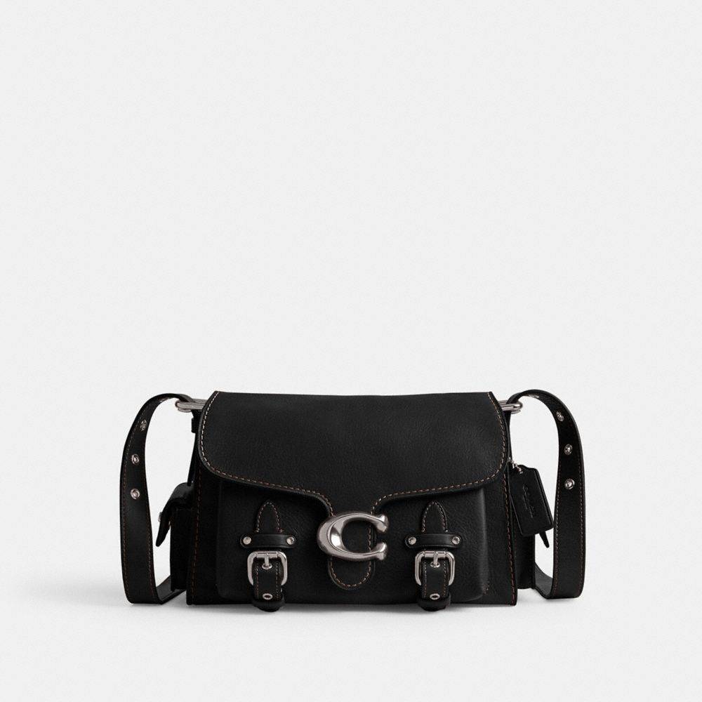 The Western Tabby reimagines our structured take on an archival 1970s Coach design with a slouchy relaxed feel. Finished with Western-inspired buckle accents, side cargo pockets detailed with our iconic turnlock closures and our Signature hardware, this natural grain leather shoulder bag features zip pockets inside and out to organize small accessories and two straps to carry by hand, style as a short shoulder bag or wear crossbody.