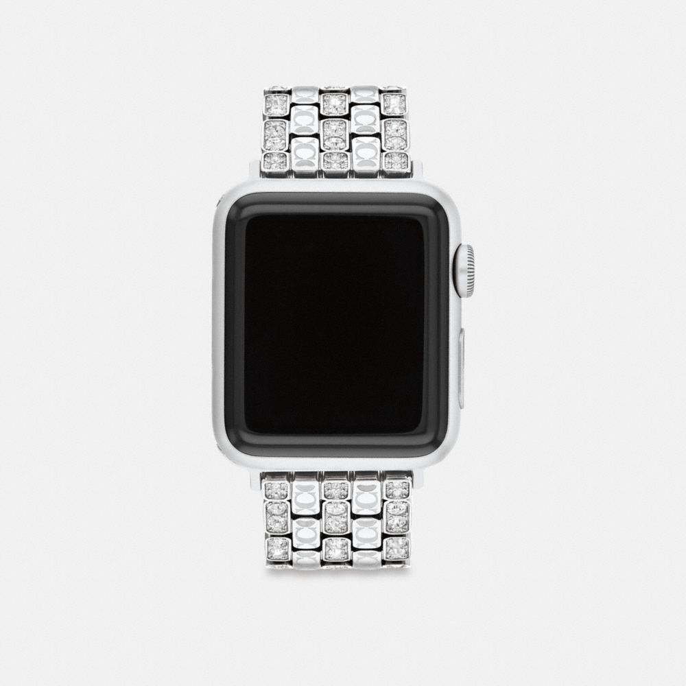 Conçu exclusivement pour les montres Apple Watch® de 38 mm, de 40 mm et de 41 mm, ce bracelet à maillons en acier inoxydable éblouissant est gravé de notre signature et orné de pavés de cristaux lui conférant une touche scintillante.