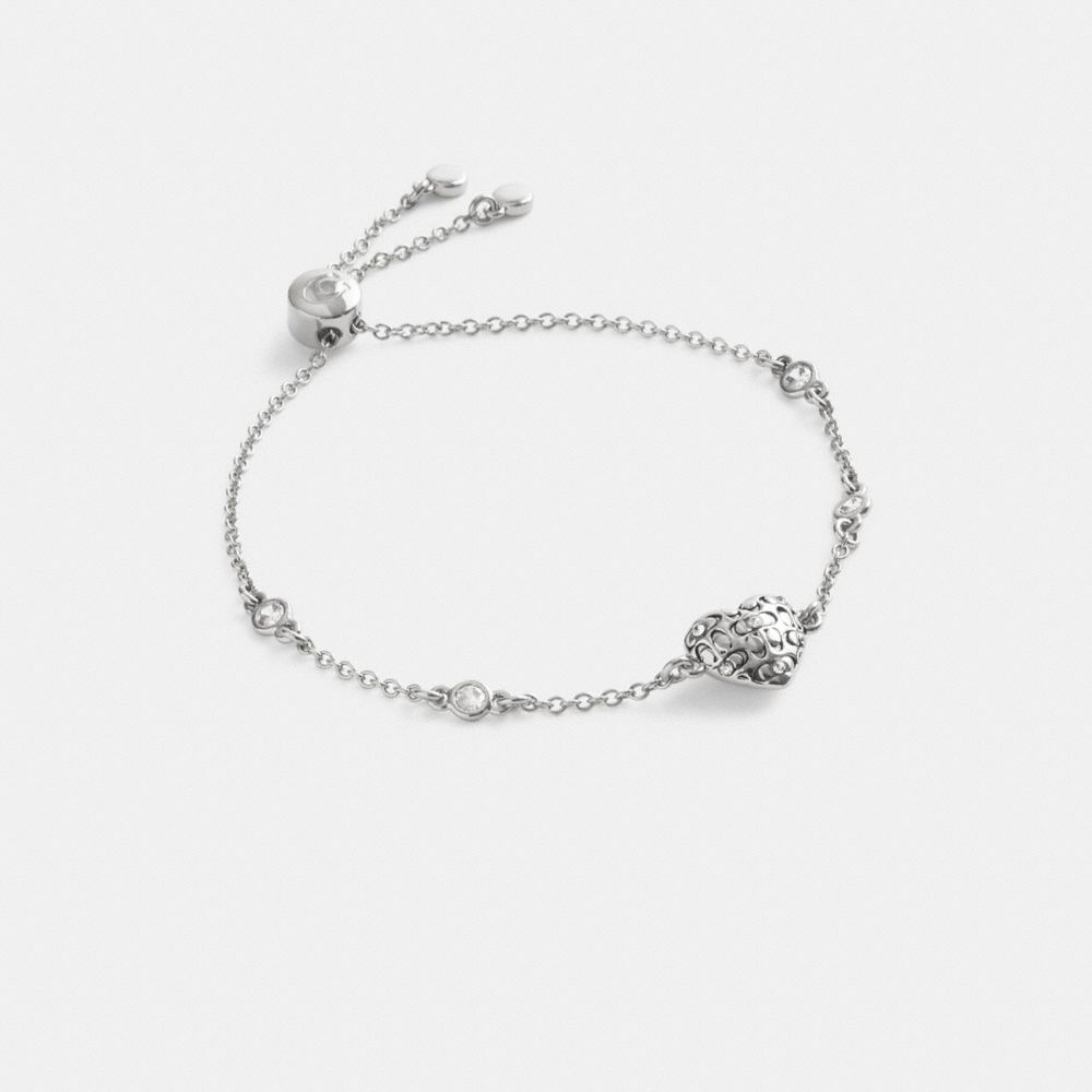 COACH®,BRACELET COULISSANT MATELASSÉ SIGNATURE À CŒUR,Argent,Front View