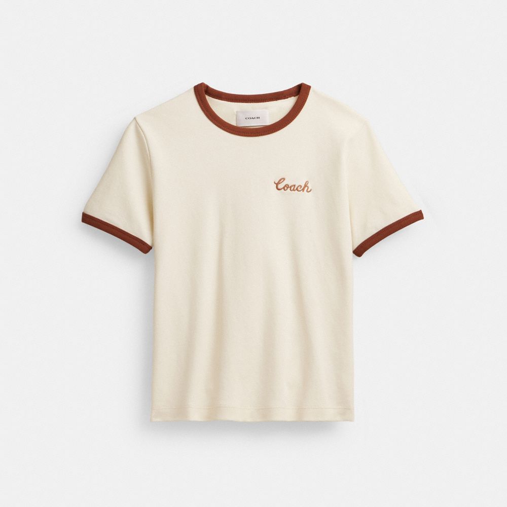 Un incontournable de la garde-robe, ce t-shirt en coton à coupe classique est orné d’une bordure de notre inscription Coach en lettres cursives. Ce modèle à col rond comporte une bordure contrastante.