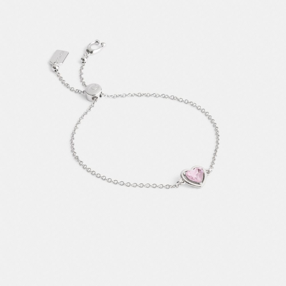 Beaucoup d’amour. Ce bracelet à chaîne délicat est orné d'un cœur en cristal scintillant dans un chaton. Doté d'une fermeture coulissante facile qui s'ajuste à la plupart des poignets, il est orné de notre Signature et et de notre étiquette pour une touche d'héritage.