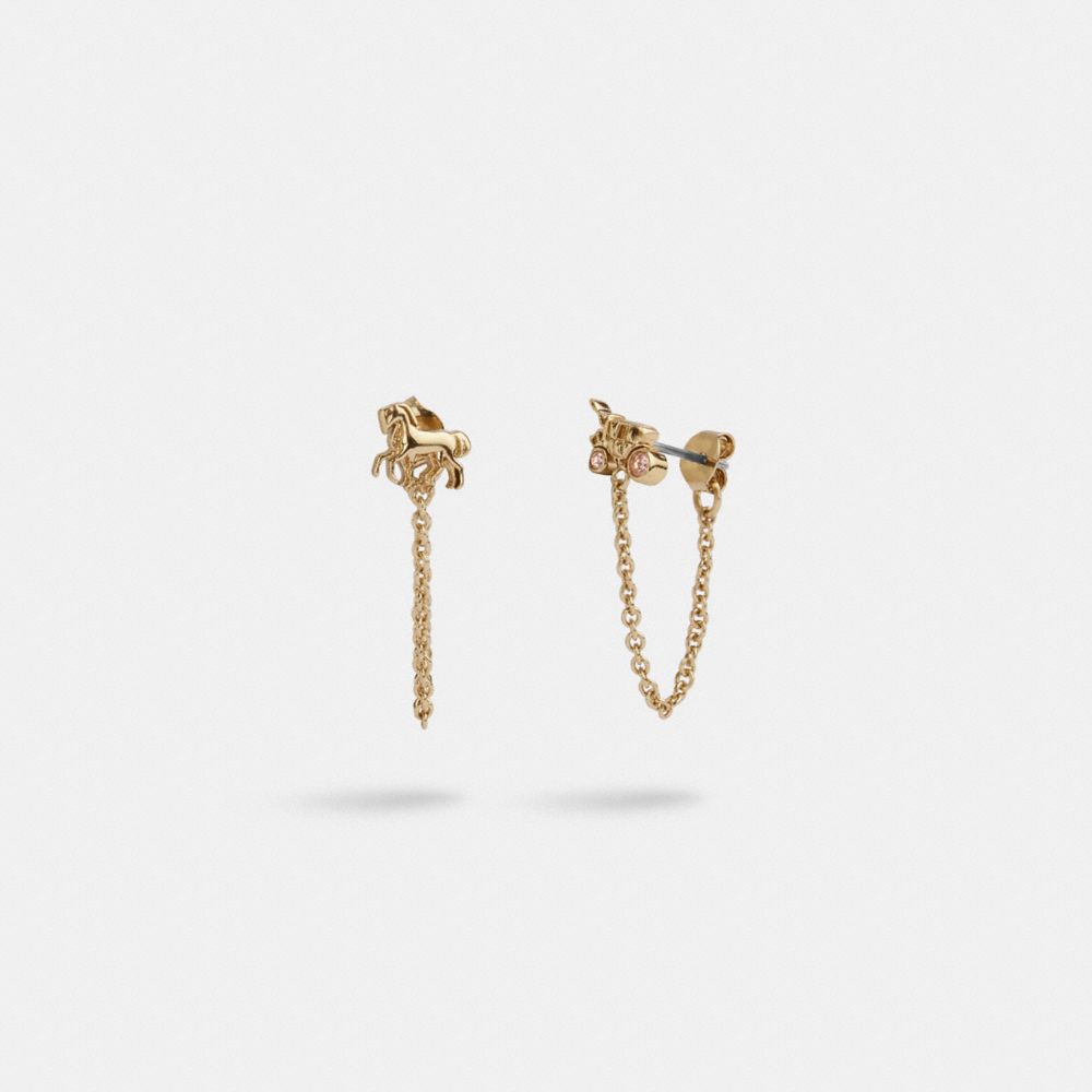 Célébrant l’héritage de Coach, ces délicates créoles avec chaîne arborent le motif iconique du cheval et du chariot. Elles sont ornées d’un cheval sur une boucle et d’un chariot sur l’autre et sont dotées d’une tige en titane hypoallergénique et d’une fermeture papillon.