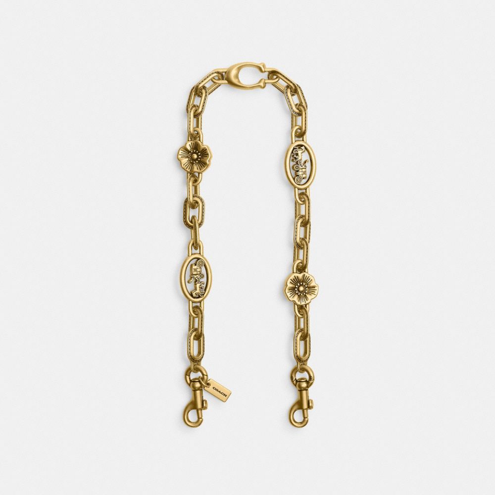 Actualisez instantanément votre sac avec notre luxueuse bandoulière en chaînette ornée d’icônes Coach, dont notre maillon de chaîne cousu remarquable, notre motif signature, notre motif rose thé et notre motif cheval et chariot emblématique. Détaillé d’une breloque délicate en forme d’étiquette Coach ornée de cuir raffiné, ce modèle interchangeable est caractérisé par deux attaches mousqueton qui vous permettent de l’attacher à nos styles les plus populaires.