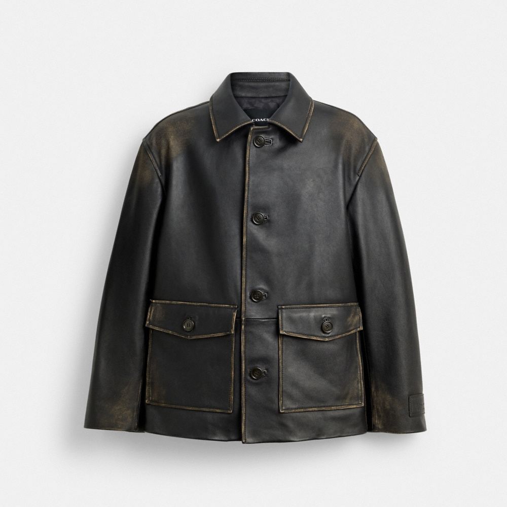 Cette veste-chemise en cuir riche, à effet vieilli à la main pour un aspect usé, rehausse un style d’inspiration utilitaire. Pièce de luxe à superposer, ce modèle à la coupe classique est agrémenté de grandes poches à rabat boutonné et de notre étiquette Coach sur mesure au poignet.