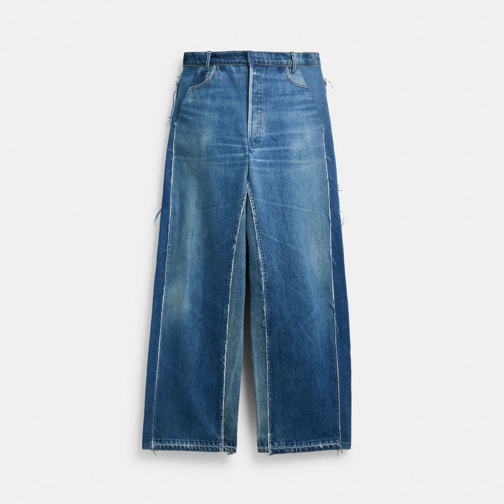 Unique et exceptionnel, ce pantalon est confectionné avec des vêtements en denim réutilisés et magnifiquement portés, inspirés par notre engagement à réduire notre impact sur la planète (et les possibilités infinies qu’offrent les vêtements d’occasion). Conçu avec une silhouette cintrée classique, ce modèle à jambe droite est caractérisé par des poches fendues et notre écusson en cuir pour lui conférer une touche héritage.