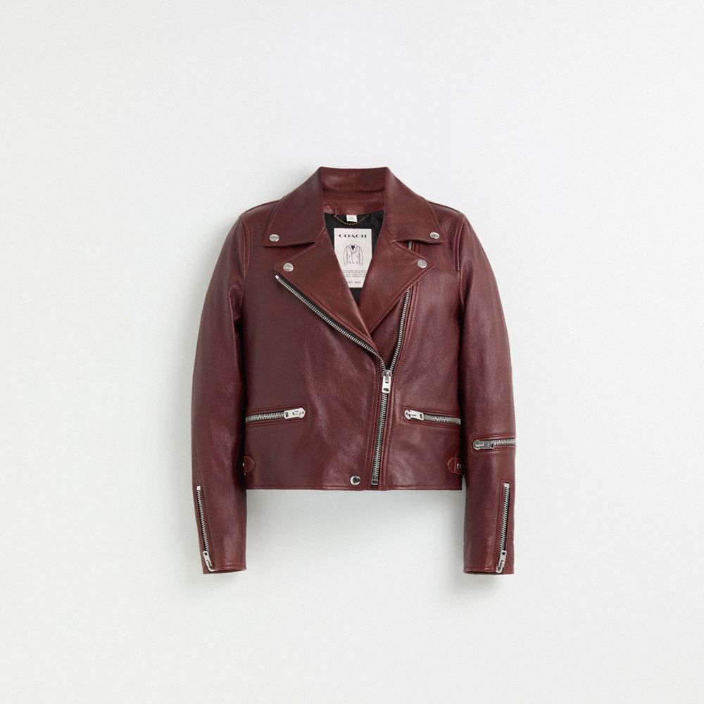 Rev up your look with this iconic Coach silhouette inspired by vintage biker styles. Crafted of buttery soft lightweight leather, it's finished with an asymmetrical zipper closure and adjustable side tabs.