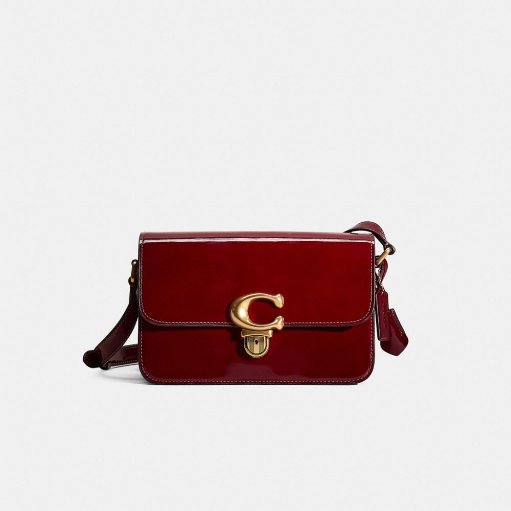 This aptly named bag was dreamed up in the Coach Design Studio. Finished with an archive-inspired Signature push-lock closure, this take-everywhere design is crafted of glossy patent leather with plenty of pockets.
