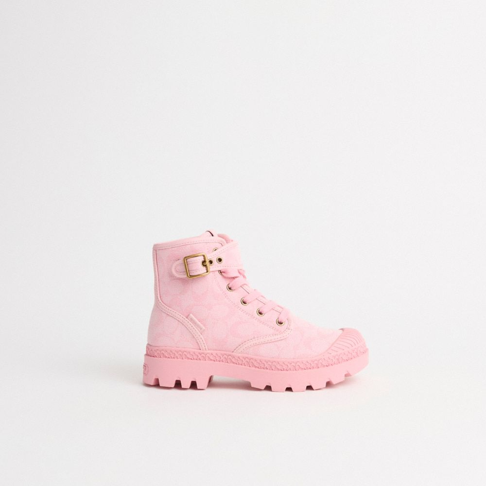 Both refined and rugged, our Trooper boot is a military-inspired design made for life on the go. Detailed with a buckle closure, this lace-up style is crafted of luxe leather and our Signature canvas. It has a durable rubber lug sole for great traction and comfort.