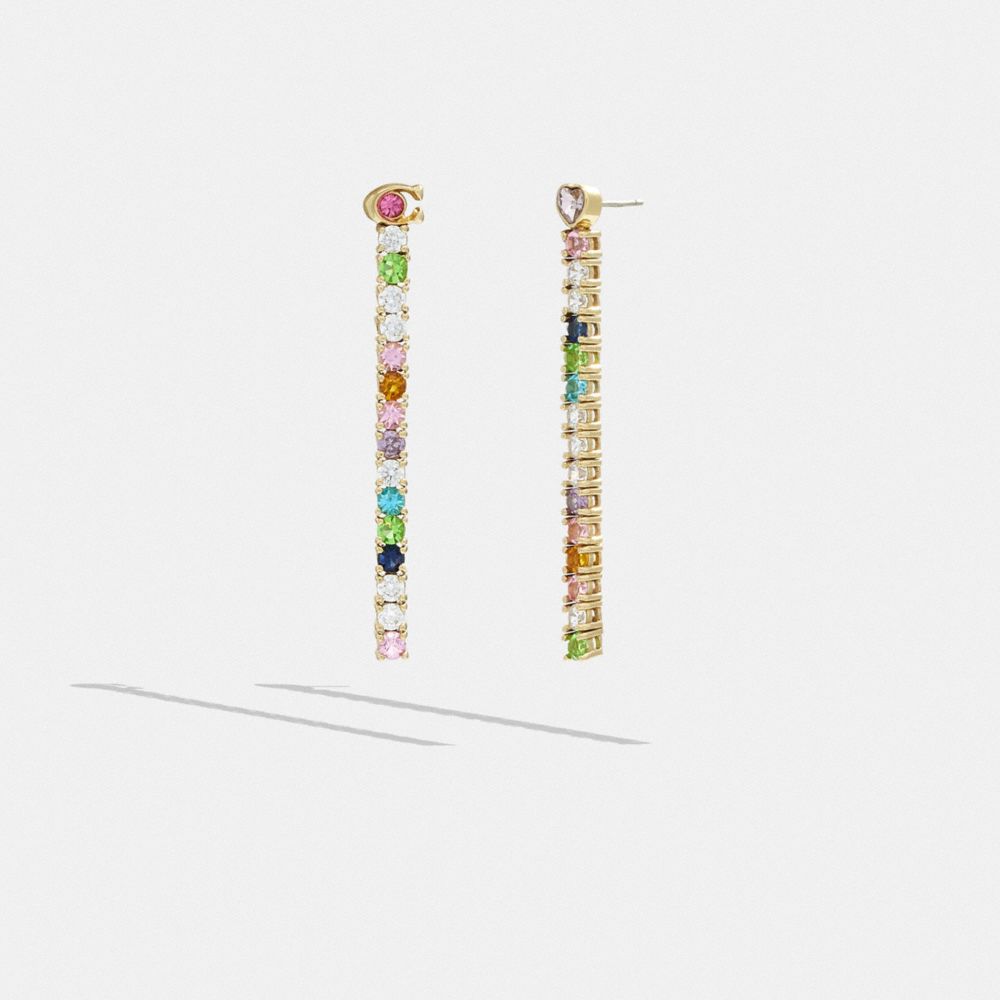 Ajoutez de l’éclat à votre journée grâce à ces boucles d’oreilles linéaires tennis ornées de cristaux arc-en-ciel sur une et de notre signature sur l’autre. Cette paire colorée est dotée d’une tige en titane hypoallergénique et d’un fermoir papillon.