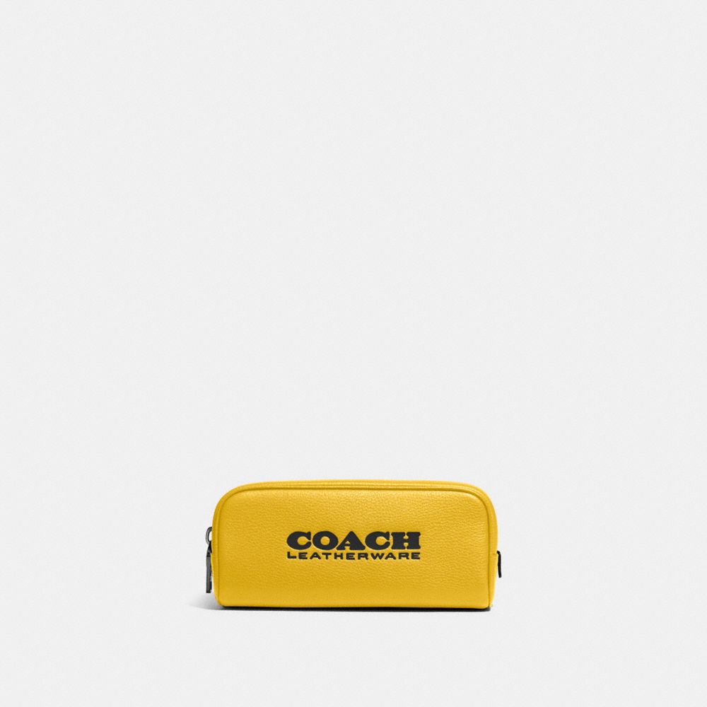 Parfait pour les expéditions de la fin de semaine ou les longs voyages d’affaires, cette trousse de voyage durable peut transporter et organiser vos produits de beauté et autres petits essentiels. Orné de notre graphique Coach, ce design en cuir maroquiné poli à zip-contour comporte une pratique poche multifonctionnelle à l’intérieur.
