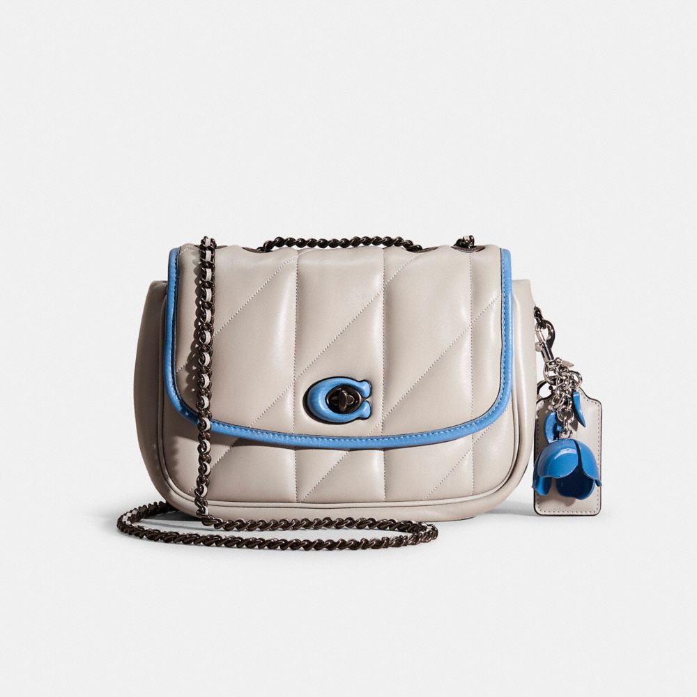 Reimagined with a bold pop of color for a distinctive finish by Eunice Chang, this flap-front style has been expertly cleaned, conditioned and restored. Our talented craftspeople Jose Reyna, Alfred Deaza and Yngrid Pichardo Baez applied bright blue pop binding to the flap, re-covered the Signature hardware in a matching hue, then added a playful repurposed charm. The Madison is a timeless style with modern proportions. Crafted of quilted plush, ultra-soft leather, it's finished with multifunction pockets, an exterior slip pocket for easy access to essentials and our Signature turnlock closure. Convert the leather chain strap from long to two short handles.