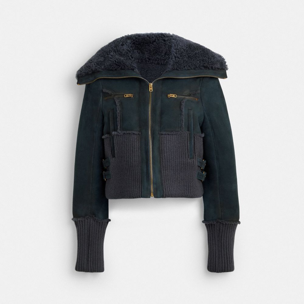 Rehaussez vos vêtements d’extérieur avec ce luxueux blouson en rason inspiré des styles militaires rétro. La silhouette super douce à coupe rétrécie est caractérisée par des poches de poitrine zippées et fendues, une fermeture zippée en métal et un tricot côtelé douillet aux poignets et à l’ourlet.